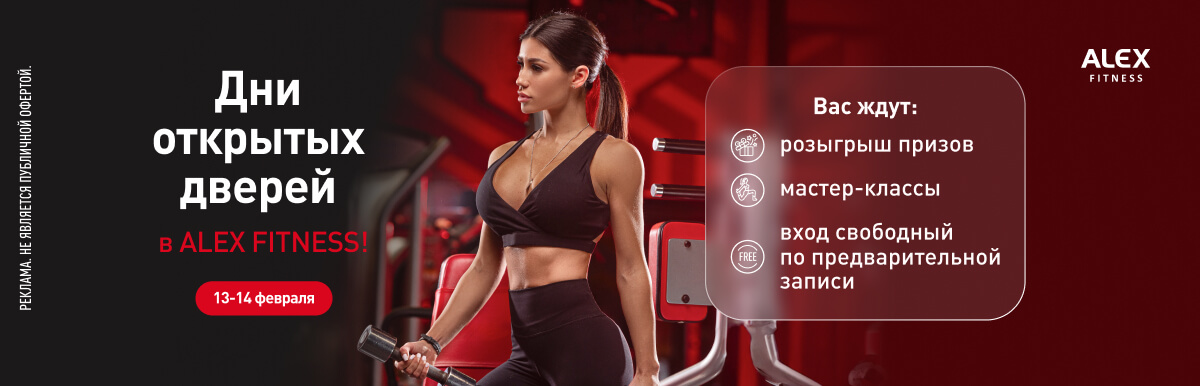 Только для новых клиентов 13-14 февраля 2026 года предоставляется возможность бесплатного гостевого посещения клубов сети Alex Fitness по предварительной регистрации по ссылке или в отделе продаж клуба. Все, кто зарегистрируется, получат право на один бесплатный визит в выбранную дату. Кроме того, в эти дни в клубах проходит розыгрыш призов для клиентов, приобретающих абонемент в период с 13 по 14 февраля 2026 года. Для участия в розыгрыше необходимо купить абонемент в дни акции. Данная акция не является лотереей либо иной игрой, основанной на риске, поэтому не требует обязательной регистрации или направления уведомления в соответствующие государственные органы. Цель акции — стимулирование сбыта услуг, реализуемых организатором акции. Участником акции может стать дееспособное физическое лицо, достигшее возраста 18 лет и являющееся гражданином Российской Федерации. Для участия в акции (бесплатного посещения) необходимо заполнить форму регистрации на сайте. Каждый участник имеет право на одно бесплатное посещение в рамках акции. Организатор оставляет за собой право признать недействительными любые действия участников акции, а также запретить дальнейшее участие любому лицу, в отношении которого возникли обоснованные подозрения в предоставлении недостоверных данных или нарушении условий акции. Призы не подлежат обмену на денежный эквивалент. Участие в акции означает согласие на обработку персональных данных для целей проведения акции. Сроки проведения акции: с 13 до 14 февраля включительно.